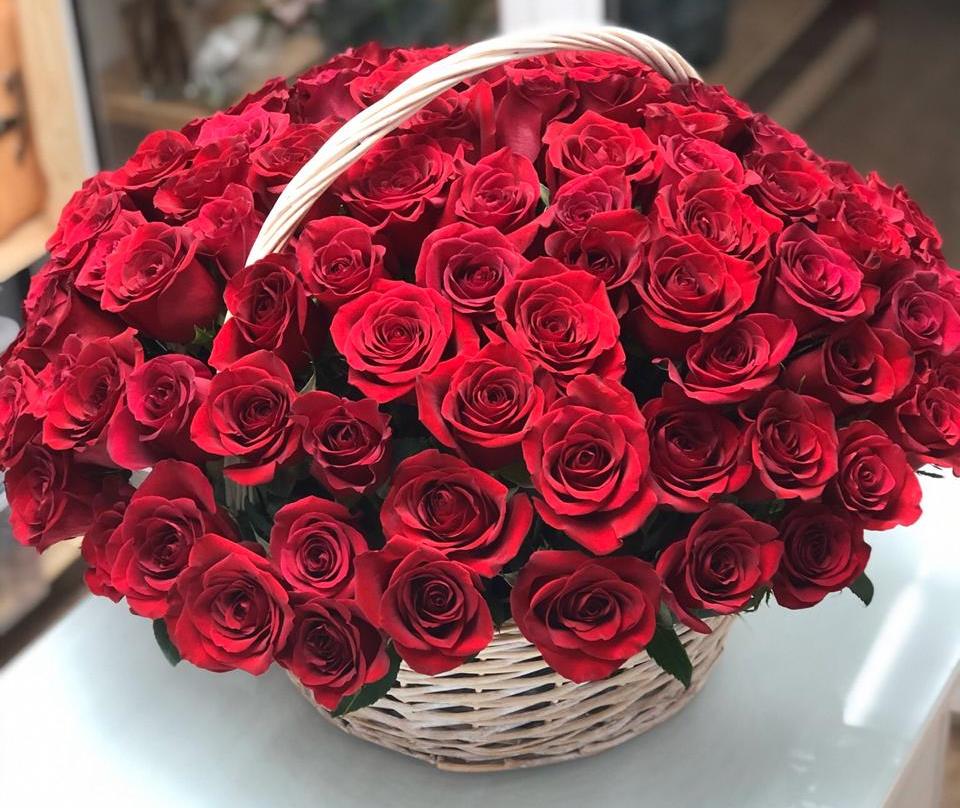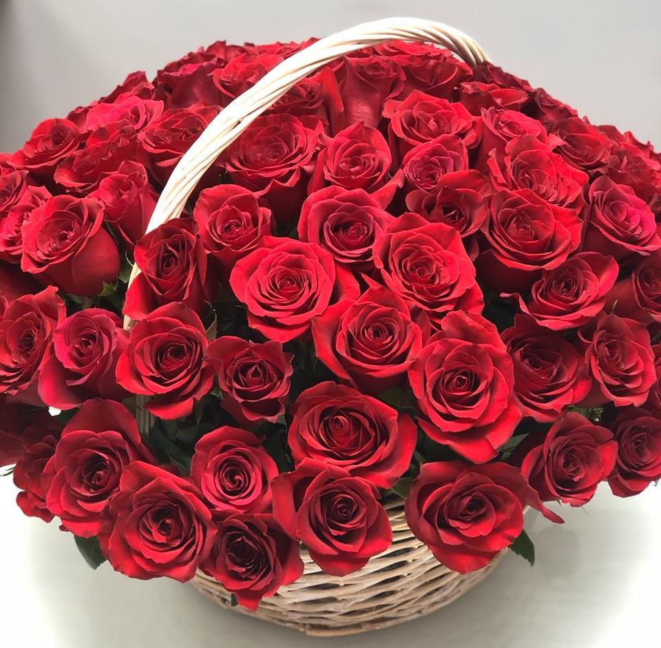 101 красная роза в корзине