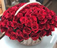 Букет из 101 красной розы, оформленный в корзину